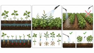 - 土壌処理剤:雑草が出る前に、土の表面に「見えない壁」をつくって発芽直後の雑草を止めるタイプ